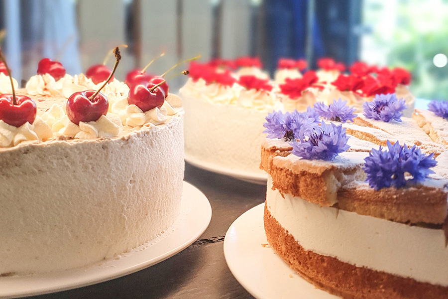 - Selbstgemachte Kuchen und Torten Bis zu 45 Sitzplätze im Innenbereich